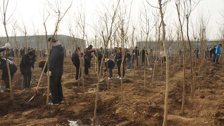 全體參加植樹活動的員工準時到位,在結束了短暫的人員組隊,劃分區域和領取工具等準備工作后,迅速的投入到植樹活動當中。各小組成員分工明確,積極踴躍。很多隊伍在組長的帶領下,領樹苗、放樹苗、填土、培土、澆水相互配合,干得熱火朝天。許多小組高效率高質量的完成本隊植樹任務后,迅速投入到其他隊伍中,互幫互助。在全體員工有組織有紀律的高效協作的前提下,在不到兩個半小時的時間內,共計完成1800棵樹苗的栽種工作,綠化面積達12000多平方米。此次植樹活動,進一步改善了控感廠區的生產環境,把原本空曠的廠區西南角的一片空地裝點得煥然一新!