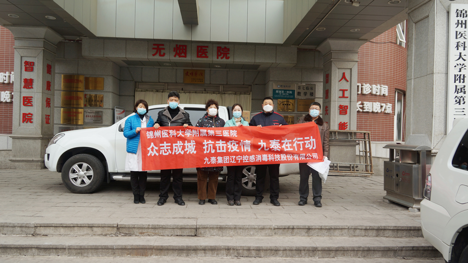 2月11日、25日,錦州九泰集團積極踐行企業社會責任,向錦州醫科大學附屬一院和附屬三院開展愛心捐贈活動,送去75%乙醇消毒液,有效緩解了新型冠狀病毒疫情防控物資匱乏壓力,發揮了積極的作用。對打贏新型冠狀病毒疫情阻擊戰提供了物資保障。
