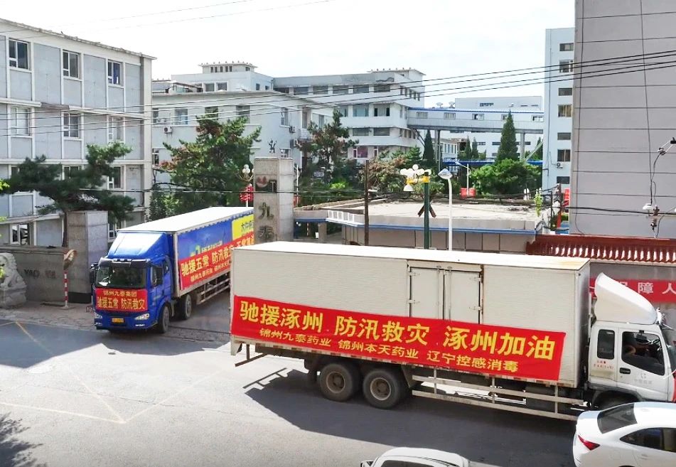 8月5日到7日,錦州九泰藥業及集團下屬錦州本天藥業、遼寧控感消毒科技公司三家企業上下聯動,全力組織員工從三家企業庫房緊急調配包括復方氯己定撒粉、復方紫荊皮水楊酸溶液、硫酸慶大霉素碳酸鉍膠囊、蒲地藍消炎片、對乙酰氨基酚片、氨咖黃敏膠囊、乙醇消毒液、84消毒液、碘伏消毒液及消毒片等價值300多萬元的急需藥品及消毒用品。其中消毒消殺用品因庫存不足,企業臨時決定增加生產計劃,員工加班加點24小時連續生產,爭分奪秒,將1400余件的救援藥品馳援涿州、五常、舒蘭等地,用于災區救援,保障受災群眾人身安全,助力災后重建及復工復產等工作。
