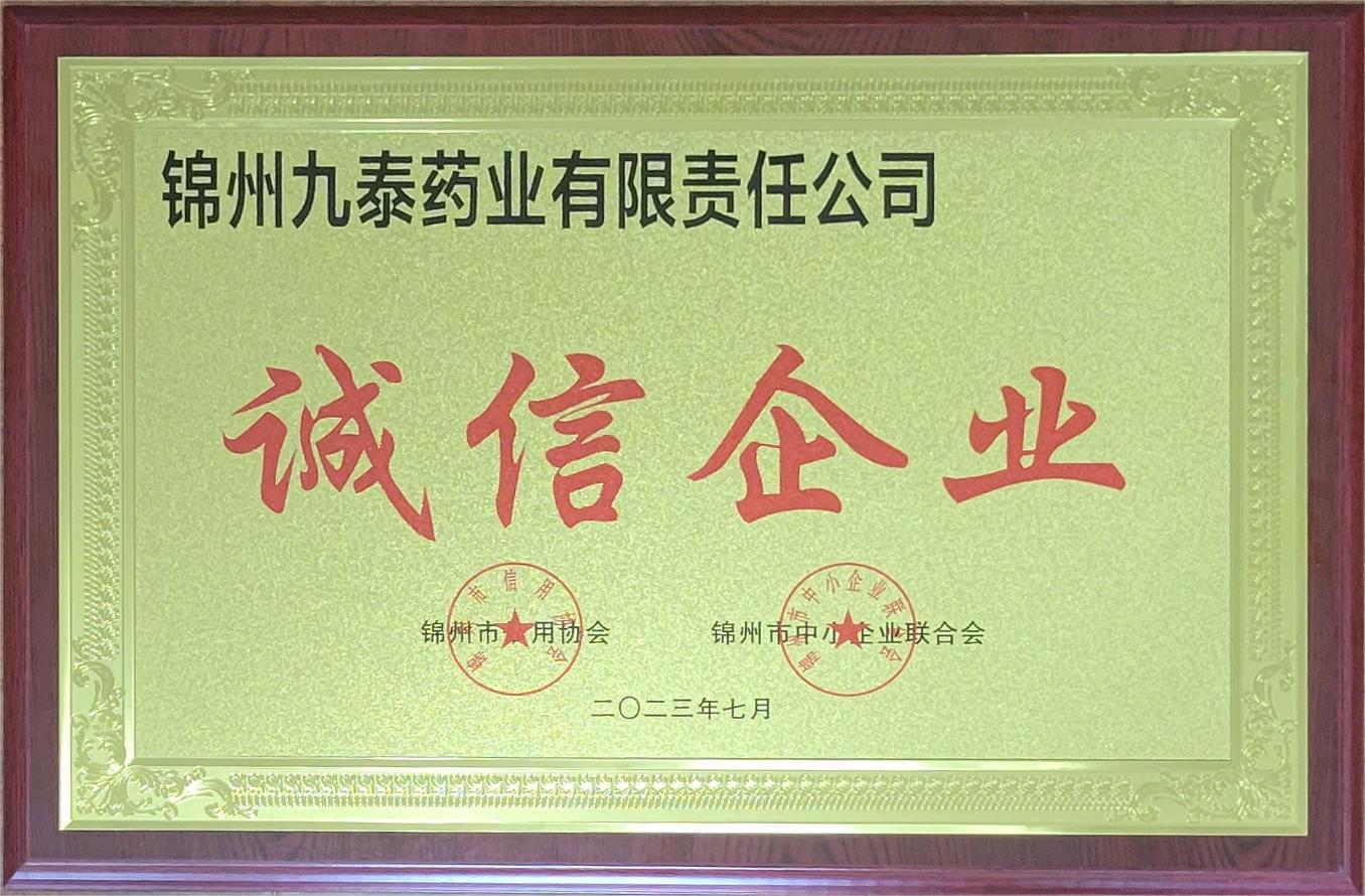 7月17日,在錦州市中小企業聯合會、錦州市信用協會誠信會員企業表彰大會上,錦州九泰藥業有限責任公司被命名為“誠信企業”榮譽稱號。