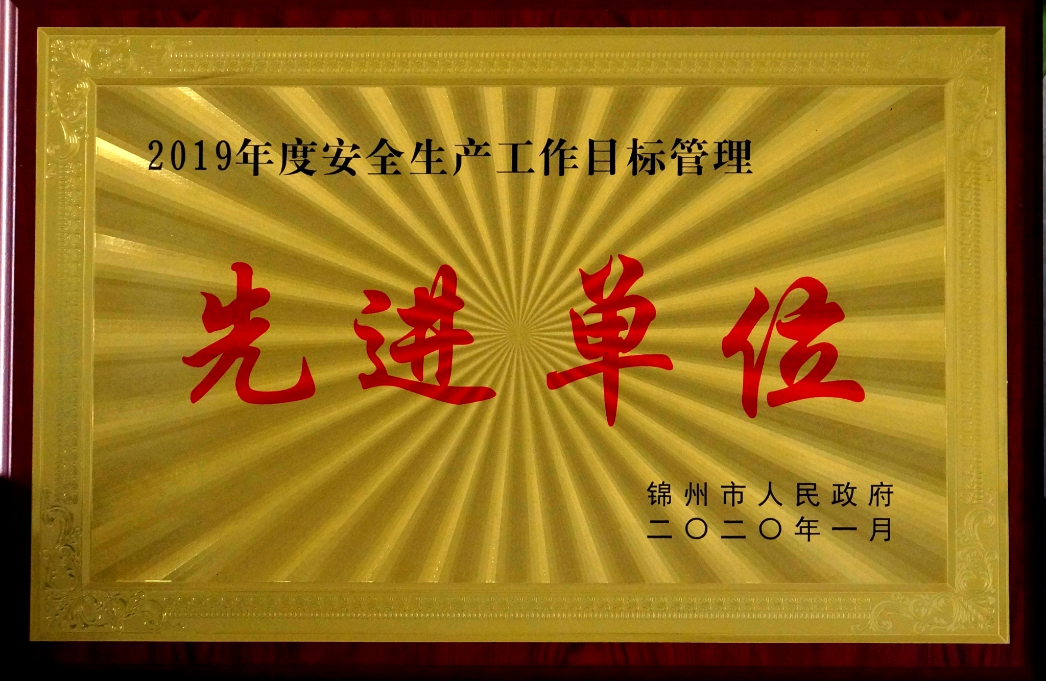 2020年4月,公司被錦州市政府授予“2019年的安全生產工作目標管理先進單位”榮譽稱號。